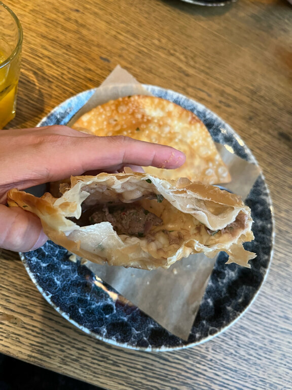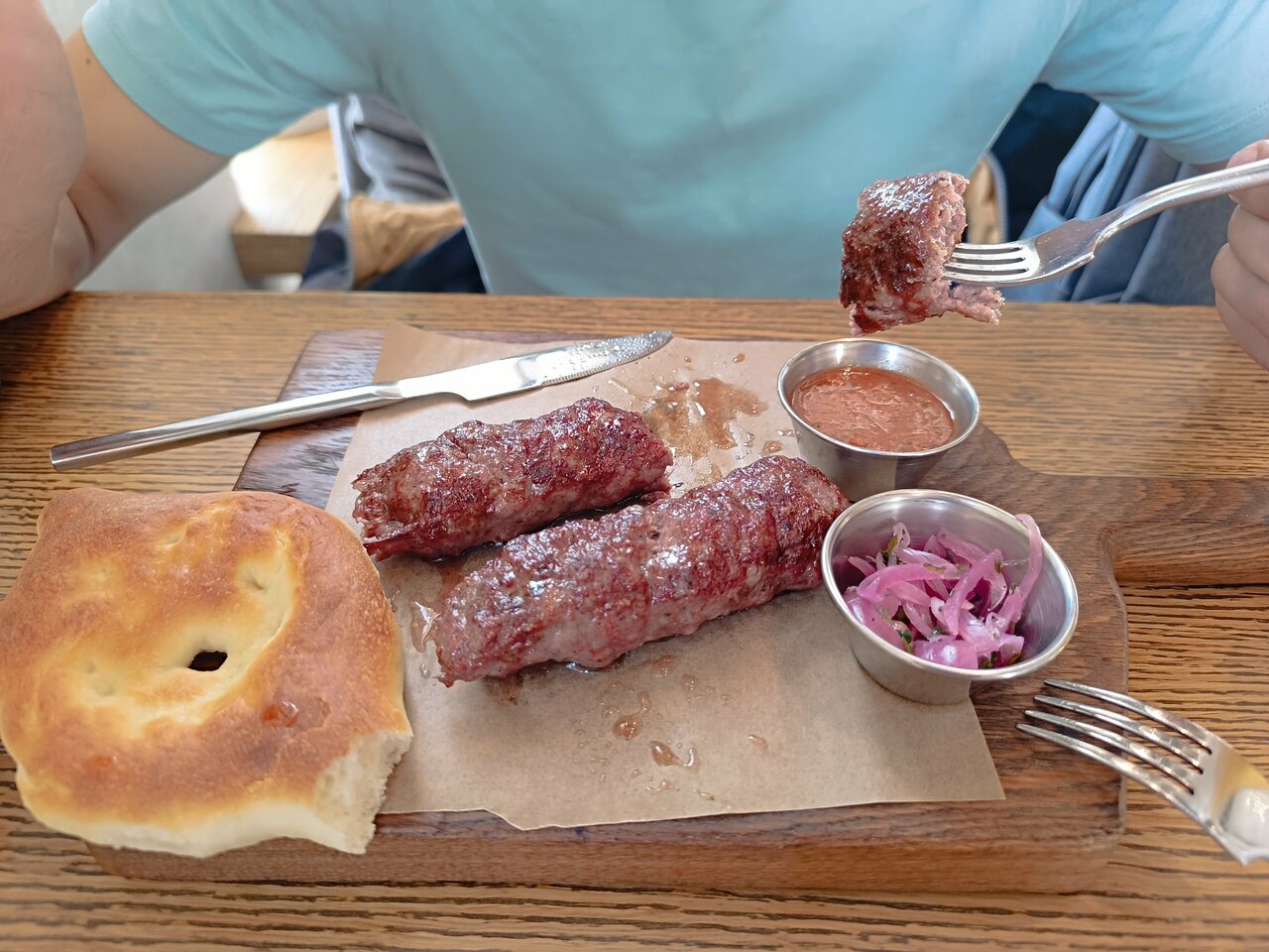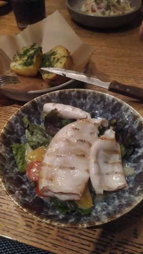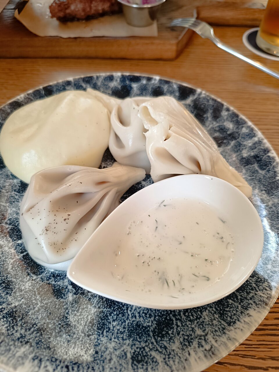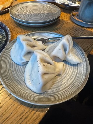 Хинкали с бараниной попались какие-то странные, вкус бульона не тот и мясо странноватое на вкус. Не знаю, специй не доложили или что случилось, вместо стандартных восьми кое как съел две. Возможно, на вкус влияет белое домашнее вино, но не уверен. Официант отнес на кухню, сказали, что отличные хинкали, но из чека исключил, за что ему огромное спасибо.