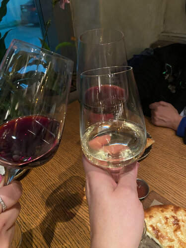 Очень рекомендую хинкали с бараниной, они потрясающие, съедаю по 7-10 штук за визит. Очень вкусные люляшки из телятины, сочные, немного пересоленные(я такое люблю), а к ним гарнир из мини шампиньонов и беби картофеля, вкус грилля чувствуется. Хачапури по-аджарски просто бомба. В заведении спокойно, тихо, все прекрасно. Официанты спрашивают подавать по готовности или курсами, сами подливают вино из графина(но не всегда, почему-то это делал только официант парень), в общем, сервис радует.